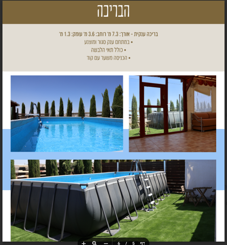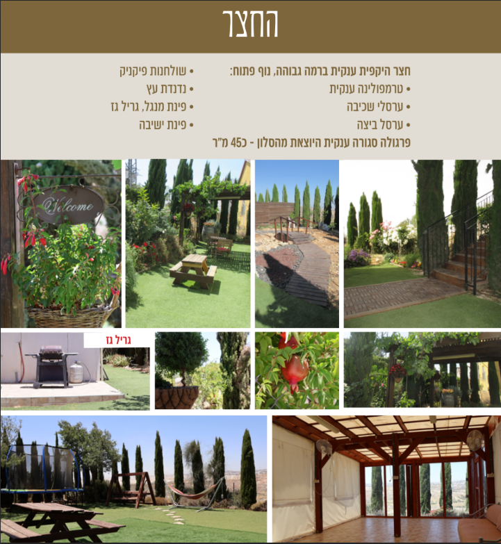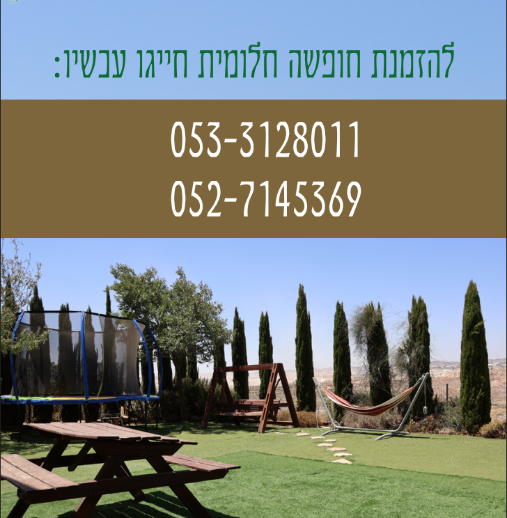 Huge dream villa, 7 bedrooms + huge living room, huge and amazingly beautiful perimeter yard, amazing open view, perfect privacy, huge trampoline and sitting areas. High-quality beds. What's included: Master suite. Coffee corner. Heater and Shabbat plate. Towels and linens. Yard. Grass. Sitting area in the yard. BBQ area. Trampoline. Swing. Pastoral view. Hammock. Private pool..... ️For photos of the interior of the house and for additional details, call 053-3128011 or 3128011@gmail.com️