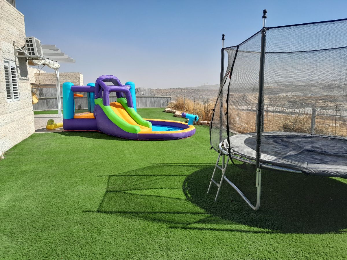 A luxurious suite for a couple with a jacuzzi and a small yard. Sale: 400 NIS per night on a weekday. In addition, a vacation villa. The villa sits on half a dunam, approximately 120 square meters on each floor. 3 bedrooms on each floor, 400 square meters of yard. The lower level is suitable for 8-10 vacationers and can be rented alone. Both levels can be rented for up to 16 vacationers. What's in the complex: Air conditioning in each room. Master suite on each floor. Additional bathroom and toilets on each floor. Extendable table for 8 + option for additional tables. Large refrigerator. Microwave. Oven. Gas stove. Wet inflatables. Trampoline. Swing. Hammocks. BBQ area. Shabbat heater. 2 hotplates. Shabbat clock. Shabbat candles. Havdalah kit. For details: 055-6706432 058-3287653